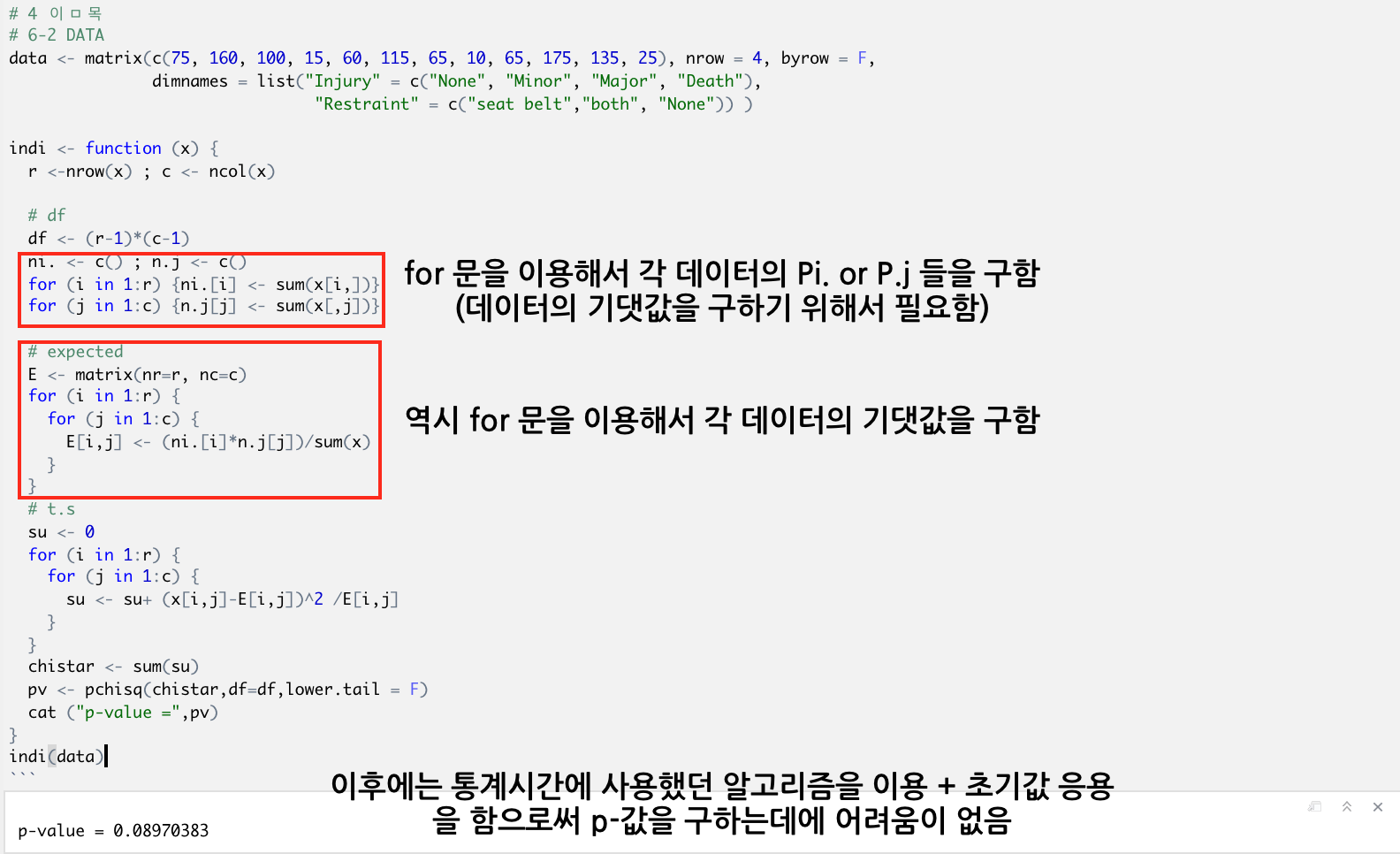 su <- su+ (x[i,j]-E[i,j])^2 /E[i,j]